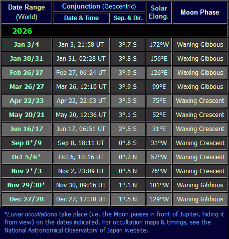 Moon near Jupiter Dates, 2026