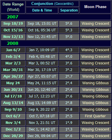 Moon near Jupiter Dates,