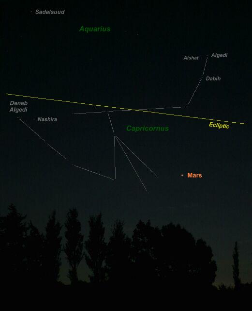 visible from Equatorial and Northern Tropical latitudes. Mars