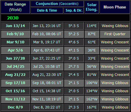 Moon near Saturn dates can also be viewed for 2023, 2024, 2025, 2027, 2028, 2029 and 2030. |