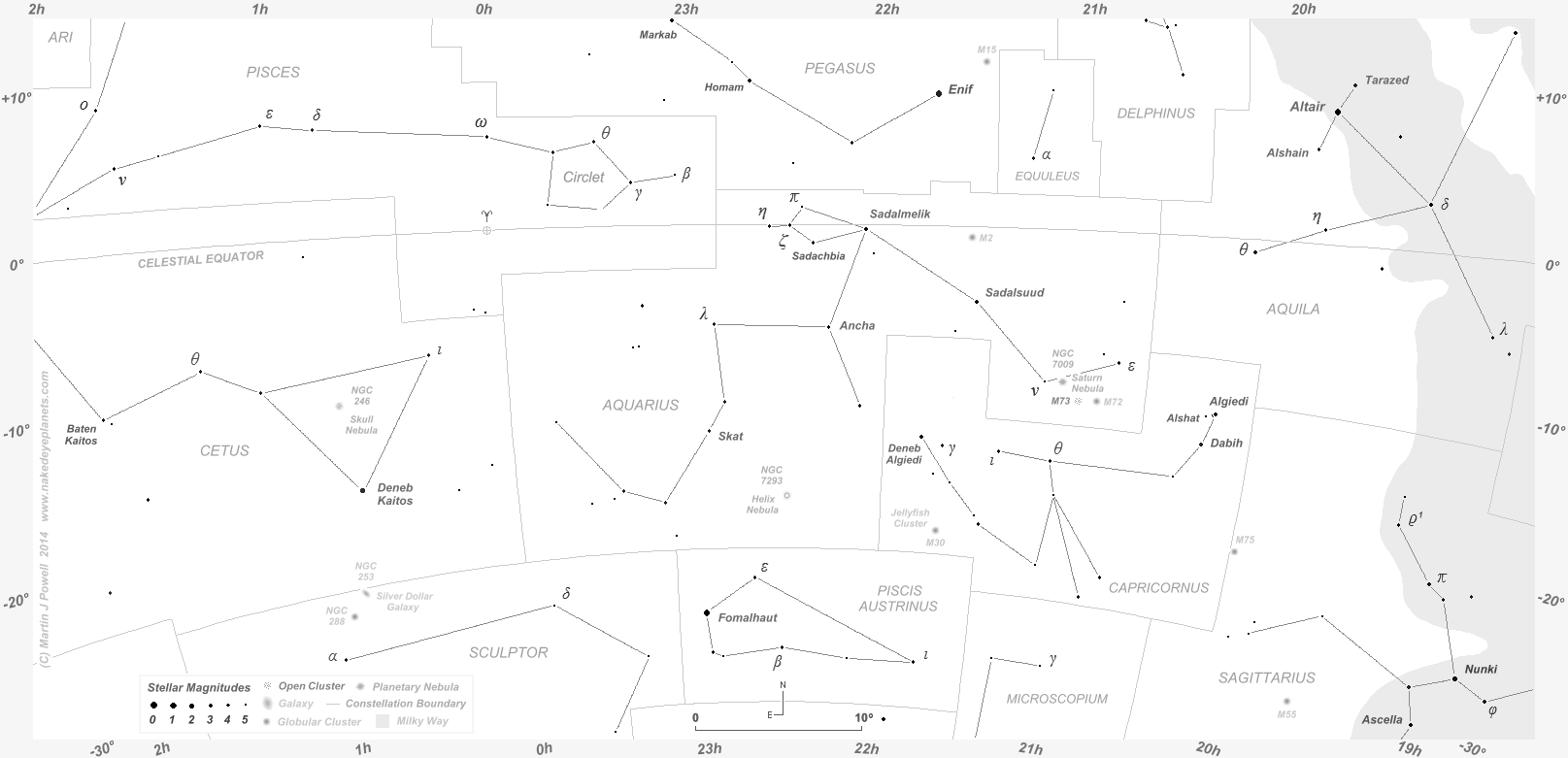 Cap or Delta Capricorni, mag. +2.9) in Eastern Capricornus.