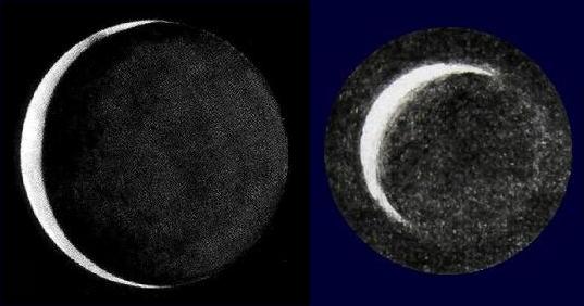 As the Venusian crescent continued to enlarge it also became more slender, such that the dark (non-illuminated) side of the planet was well-displayed when seen from the Earth. With the aid of eyepiece filters, telescopic observers now began their search for the mysterious and elusive Ashen Light, a faint glowing of the night side of Venus which has no clear explanation. First observed in 1643 by the Italian astronomer Giovanni Riccioli (1598-1671), the effect is best observed when Venus is at a narrow crescent phase and is seen against a fully dark sky. An obstruction known as an occulting bar can be placed in the telescope eyepiece, thus blocking the glare of the planet's crescent and allowing the unlit portion of the disk to be seen with greater ease. The Ashen Light is thought to be caused either by the planet's surface glowing red hot (due to its extremely high surface temperature) or by electrical activity in the planet's dense atmosphere. Intriguingly, reports of the Ashen Light have been rare in recent years, though it is difficult to say whether this is the result of improved observing equipment (i.e. eliminating contrast effects caused by poor optics) or a true reduction in activity of a genuine phenomenon.