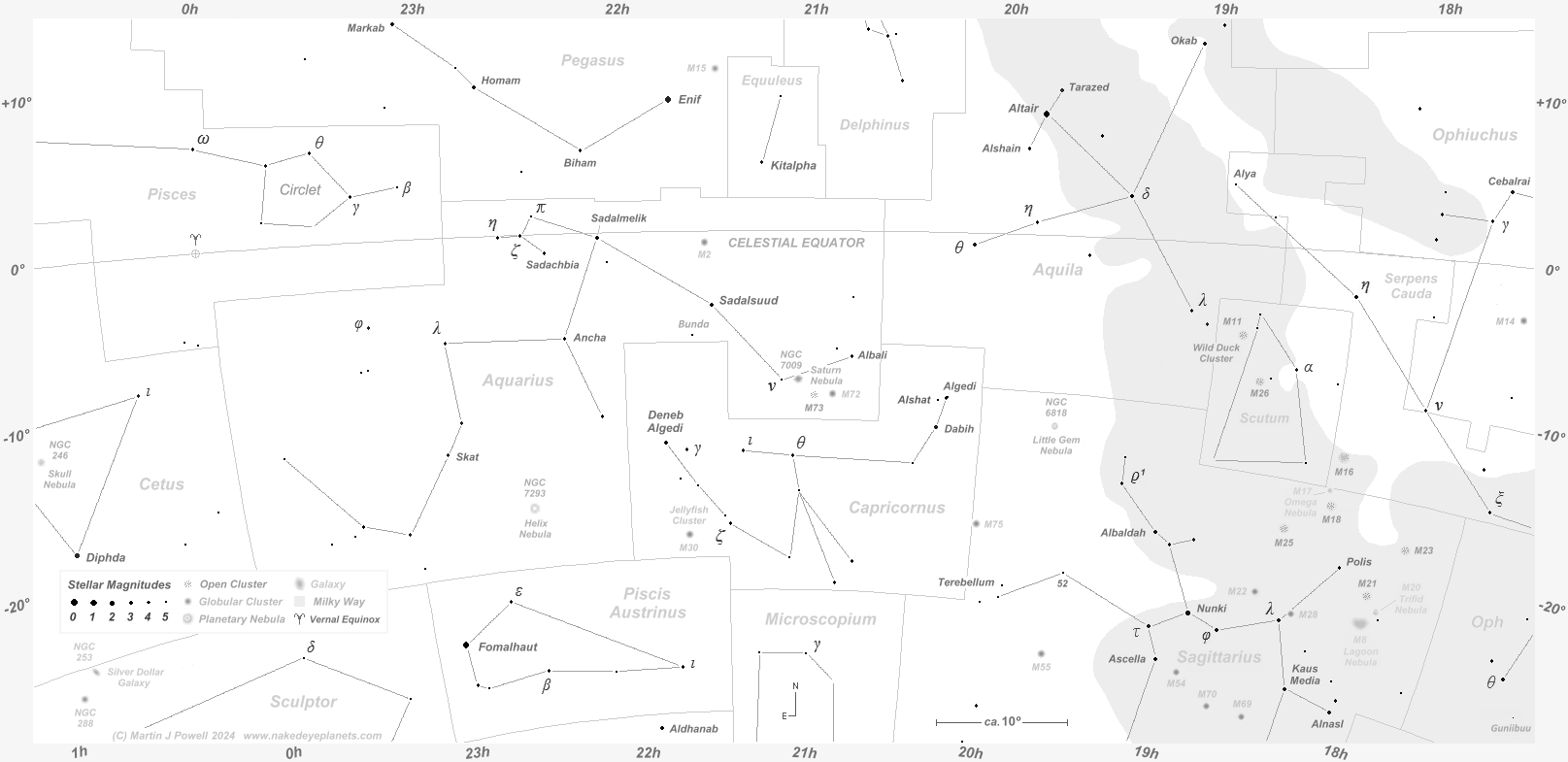 Venus was finally lost from view from both mid and high-Northern latitudes by the third week of March, bringing the 2024-25 evening apparition to a close. The planet retrograded unseen into Pegasus on March 22nd, traversing a 1º.2 wide section of the constellation's South-eastern corner over the next two days.