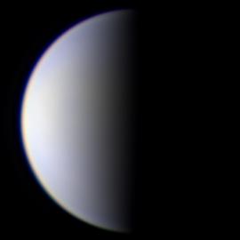 As the apparition drew to a close in March, observers equipped with binoculars may have attempted to detect the tiny crescent of Venus soon after sunset as it languished low in the Western sky. Telescopes showed a large, thin crescent at this point, over 50" in diameter, the image greatly disturbed by the Earth's turbulent atmosphere and split into the rainbow colours by an effect called dispersion (an example of how dispersion appears through a telescope can be seen here).
