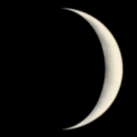 Because Venus never appears more than 47° from the Sun, the Moon always shows a crescent phase whenever it passes the planet in the sky: a waxing crescent during evening apparitions and a waning crescent during morning apparitions. |